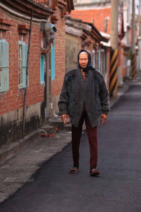 迎面而來的阿嬤,身材高挑,整體造型特別,當她走在這巷道,是如此協調,彷彿整個巷弄都是她的舞台。