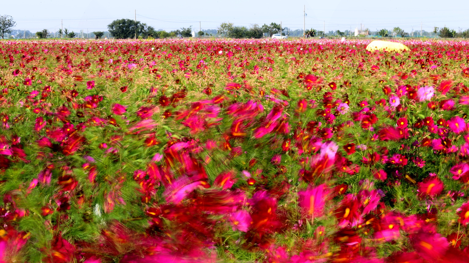 二期稻作收割後,農民利用休耕期,在田間種植具有綠肥功能的花卉。 綻放的波斯菊,在風中毫無保留地展現它的舞姿。