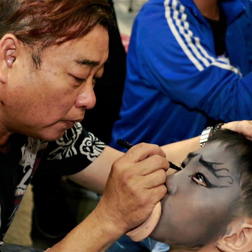 因為蚣蜈神童會依扮演的角色化妝,透過妝扮的演色轉化蜈蚣神童的個性,在卸妝後脫去之前不好的個性,代表重生之意。