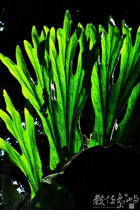 青翠鮮活的綠葉在光線下透出獨特脈絡。