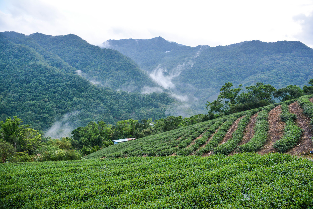 坪林的茶園,透著天色與山嵐。