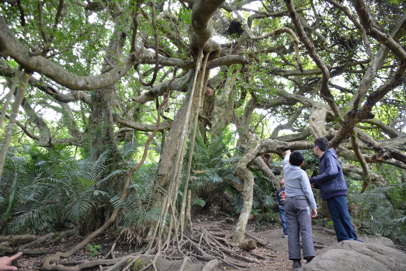 拍照地點:台東縣延平鄉鸞山 這是大葉白榕氣根盤根錯節的向外增生,有如許多腳往外移動,所以被稱為會走路的樹。