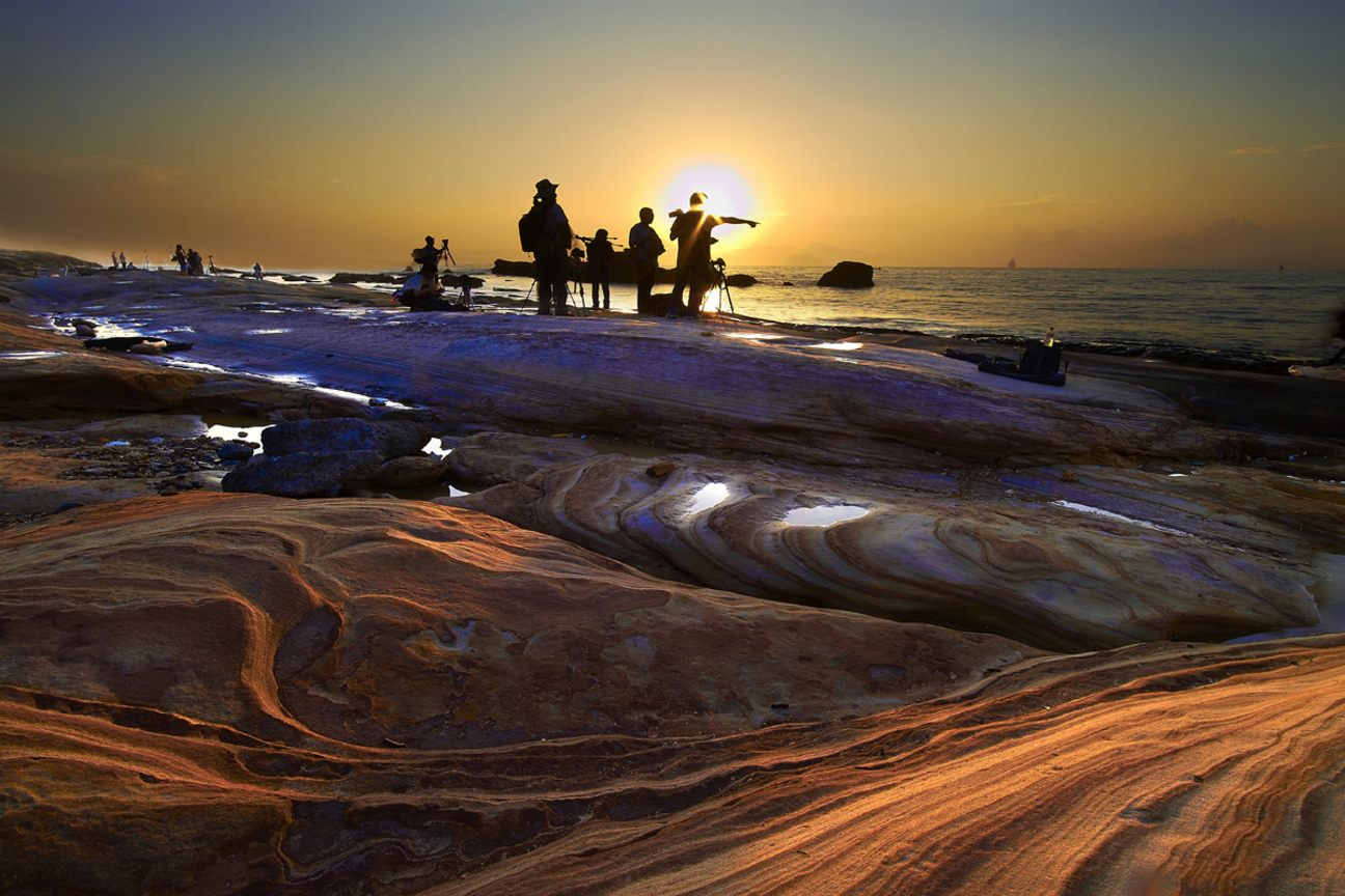 作者 : 張慶聲 地點 : 新北市萬里區 攝影時間 : 2011/09/11 龜吼海邊遠眺無邊碧海,令人心曠神怡,海岸地形受到海水的波浪、潮汐與海流的作用,加上海岸本身的組成岩性的軟硬和地質的構造 現象,與河川上游沖刷所帶下來的沈機物,慢慢塑造出多樣的海岸