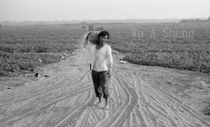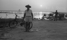 有夕陽有晚霞 很美麗 有夕陽沒晚霞 很辛勞 這是西部濱海的蚵農 結束一天的辛勞之後 準備返家 兩位蚵農站的位置 呈現前後兩對分的關係 遠方有高架的蚵寮 更遠方的半空上 有日頭 日頭的影子 映在海平面上 這時的日頭 叫夕陽 有夕陽 沒晚霞 也很 詩情畫意