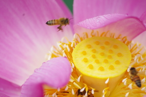 大自然中平時不去注意到,原來蜜蜂與荷花原來是如此親密。