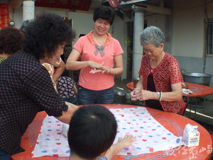 在純樸的鄉鎮,只要一家有喜事,就是家家戶戶的大事,左鄰右舍、婆婆媽媽們都熱心前來幫忙。