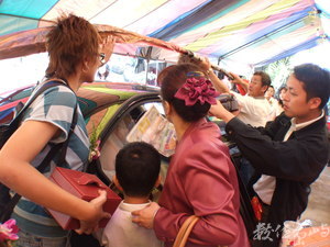 喜氣洋洋的紅色布幔,在都市的喜慶上,已經被許多華麗的裝飾給取代了,唯有在這樣純樸的地方,還見得到它的蹤影