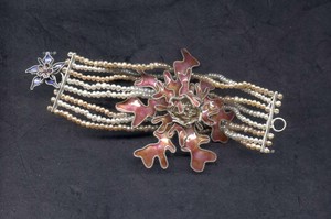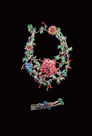 2003 45×3×10cm 銀、琺瑯、珊瑚、珍珠 Flower-shaped Ornament Sliver,Enamel,Coral,Pearl Necklace