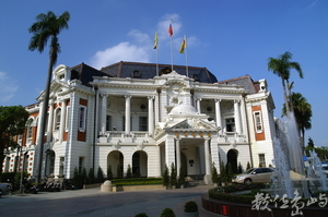 州廳前人行道上也遍植花草,柔和的氣氛與後方州廳宏偉的巴洛克建築,一柔一剛相互輝映,別具古典與現代的雙重藝術風格。