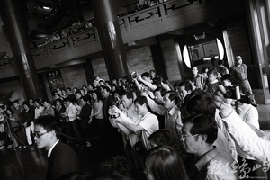 此系列作品拍攝於國父紀念館,記錄整點的儀隊衛兵交接活動。紀念館大廳的國父銅像兩側有衛兵站崗,氛圍莊敬且嚴肅。時間接近整點前,已有許多國內外的旅客在大廳等候,引頸期待著儀隊衛兵的交接表演。交接開始時,所有的旅客圍繞在交接場地前,目不轉睛的盯緊正在表演的儀隊衛兵,深怕一不小心就看漏了精采鏡頭。也有許多遊客紛紛拿起手上的攝影器材記錄交接儀式。交接過程中,儀隊衛兵筆直的身形、整齊一致的步伐,以及每個轉身踱步的瞬間,都能引來觀禮者的陣陣驚嘆。整個儀式時間大概為十分鐘上下,交接一結束後人潮馬上一哄而散,實在無法想像前一分鐘這裡還擠滿了人群。紀念館中每日的儀隊交接時間在早上九點至下午五點的每個整點,由陸、海、空三軍的儀隊輪流表演。因此各有不同的表演特性及操槍技巧,令觀禮者有不一樣的感受。