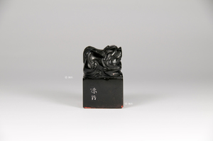 印文(篆書):擁書泥酒 材 質:墨金石 年 代:約1993年 尺 寸:3.2 cm × 3.2 cm × 5 cm 邊 款:陳約