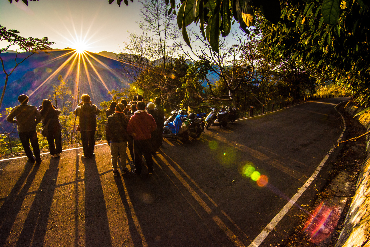 2017年元旦, 一群年輕人在往雪見的司馬限林道上,迎接2017於聖稜線升起的第一道曙光.