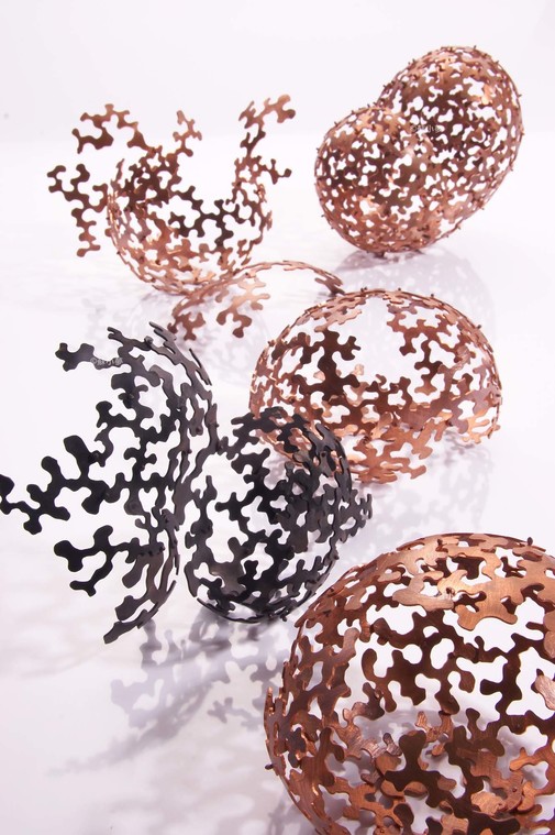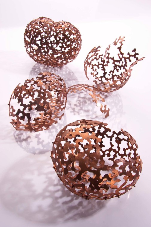 2003 一組十六件 紅銅、化學染色 空間物件 Cocoon Copper,Patina Object