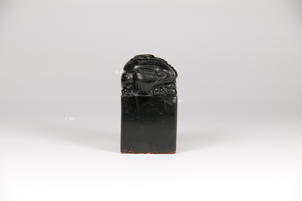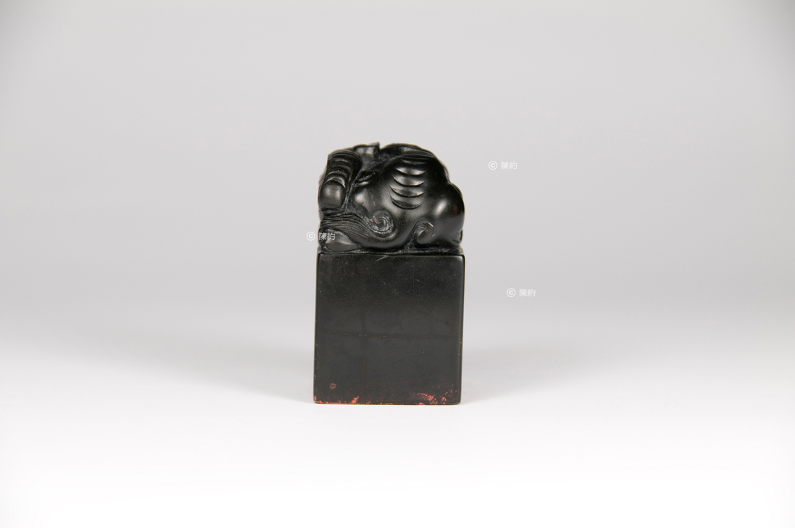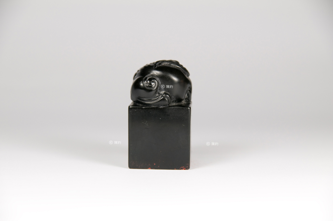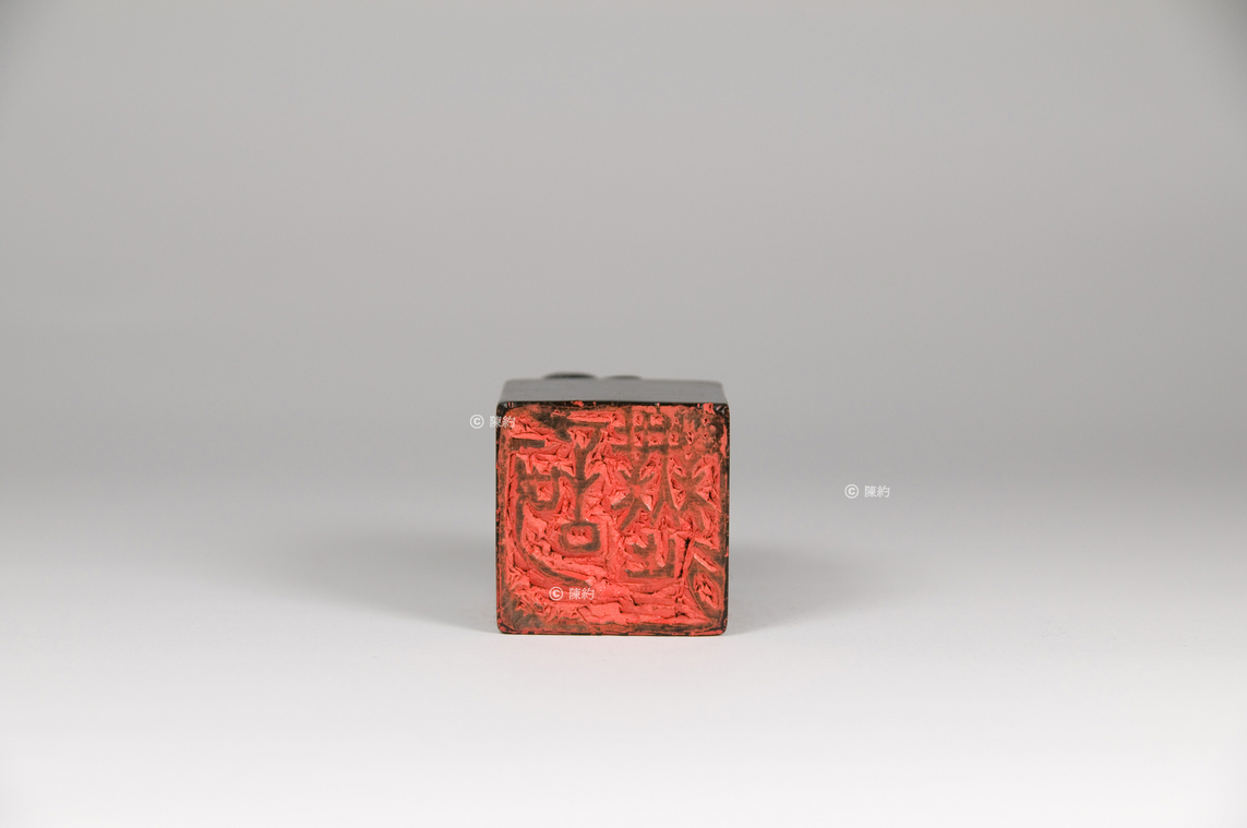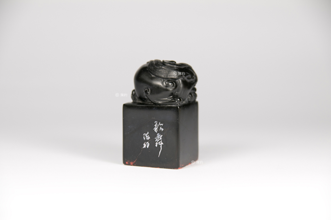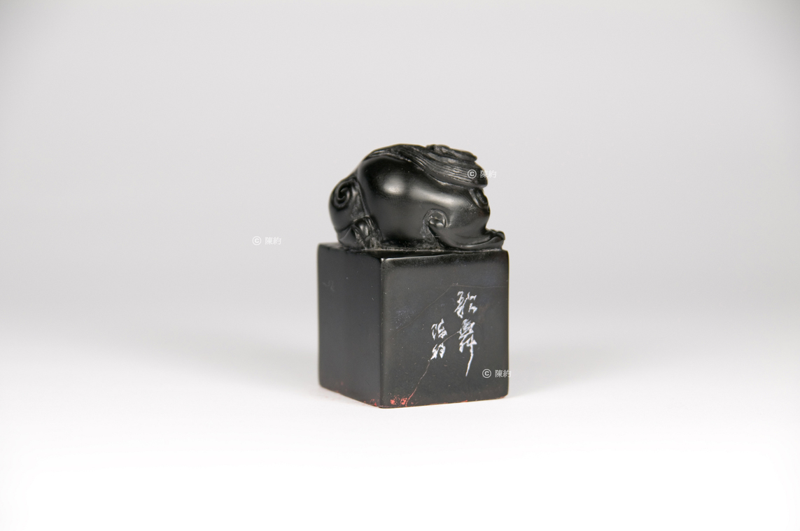 印文(篆書):歌舞 材 質:墨金石 年 代:約1993年 尺 寸:3.3 cm × 3.3 cm × 5.6 cm 字 體:行書 邊款(行書):歌舞 陳約