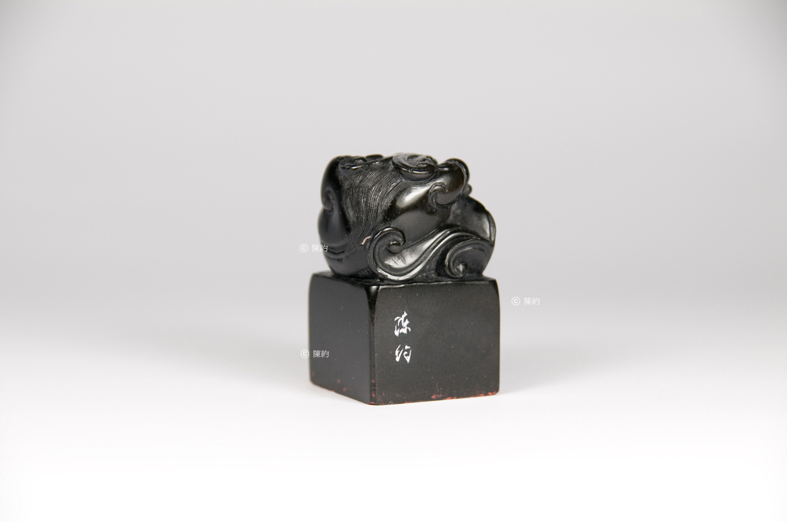 印文(篆書):卓異 材 質:墨金石 年 代:約1993年 尺 寸:4.1 cm × 3 cm × 4.3 cm 邊 款:陳約