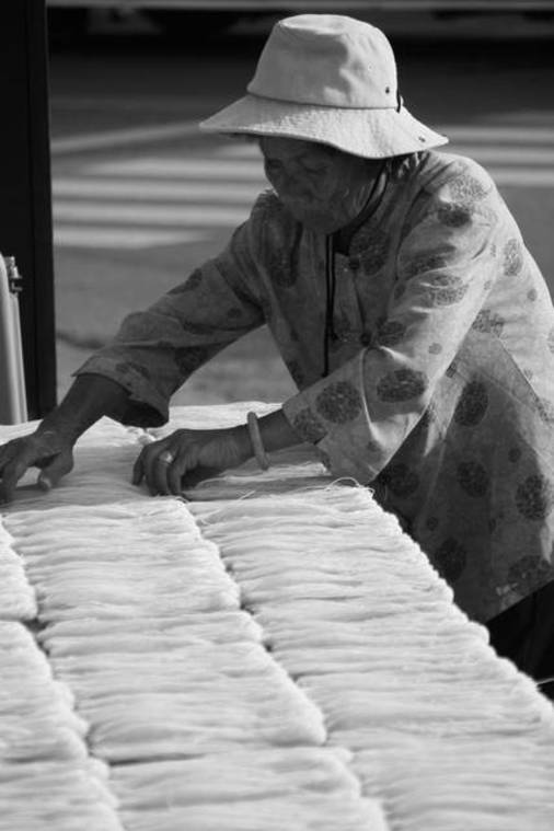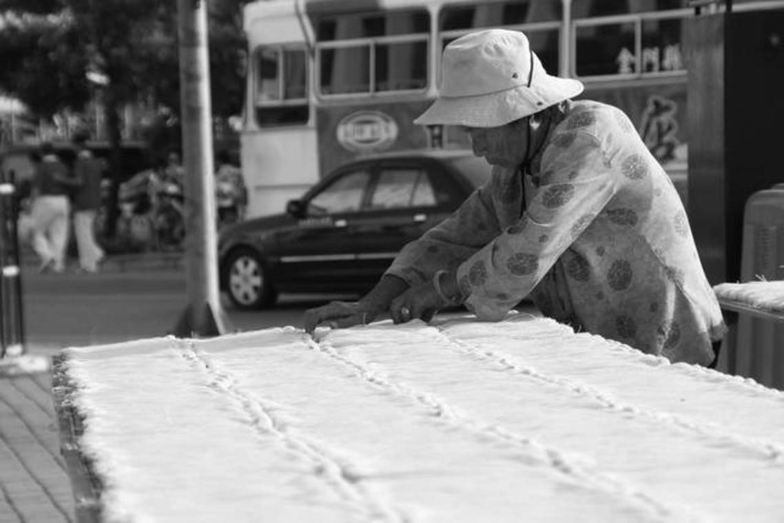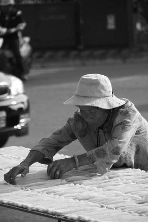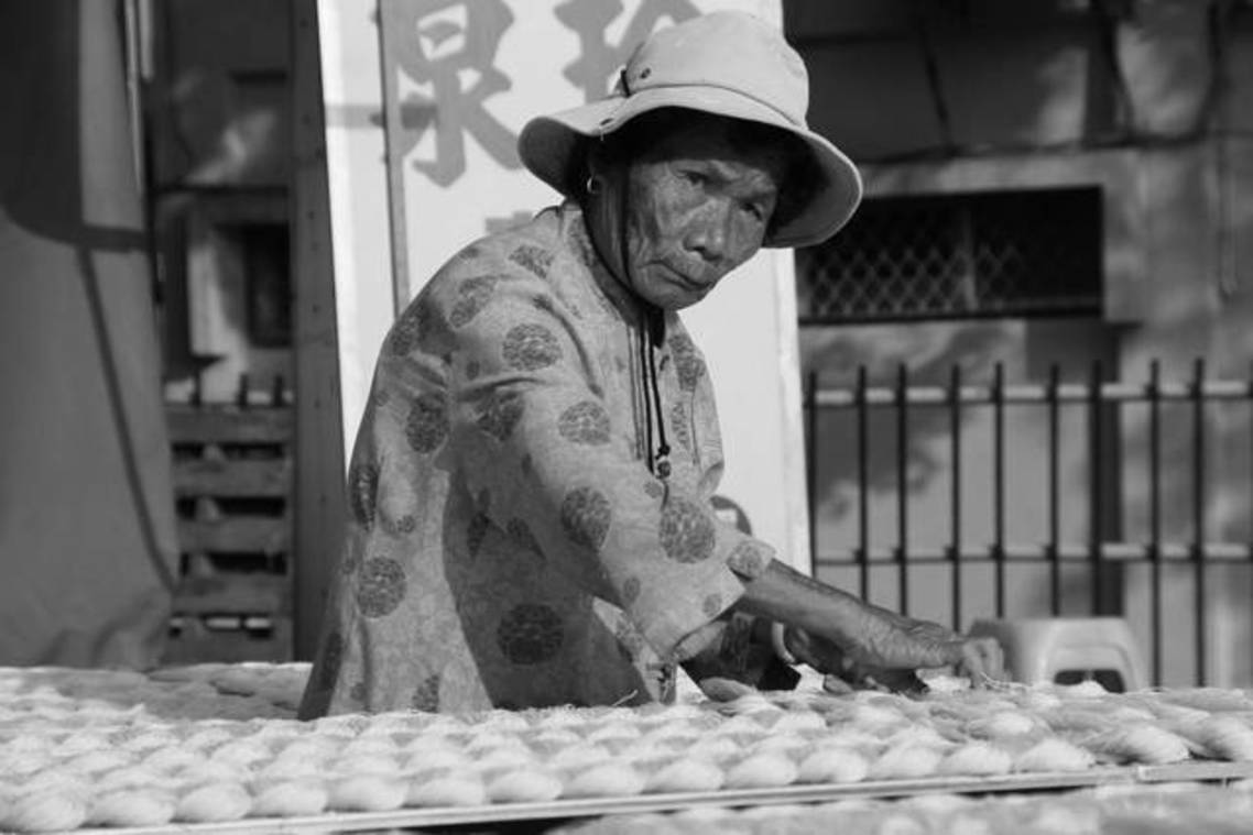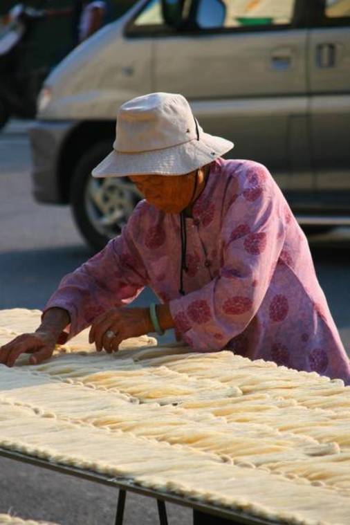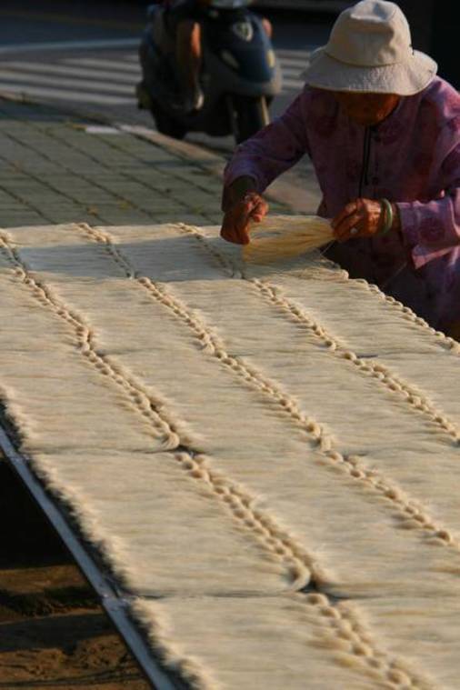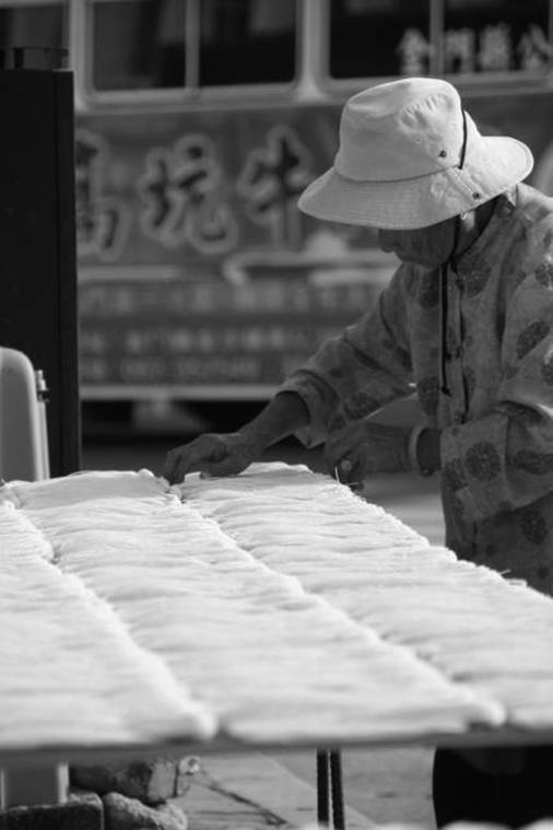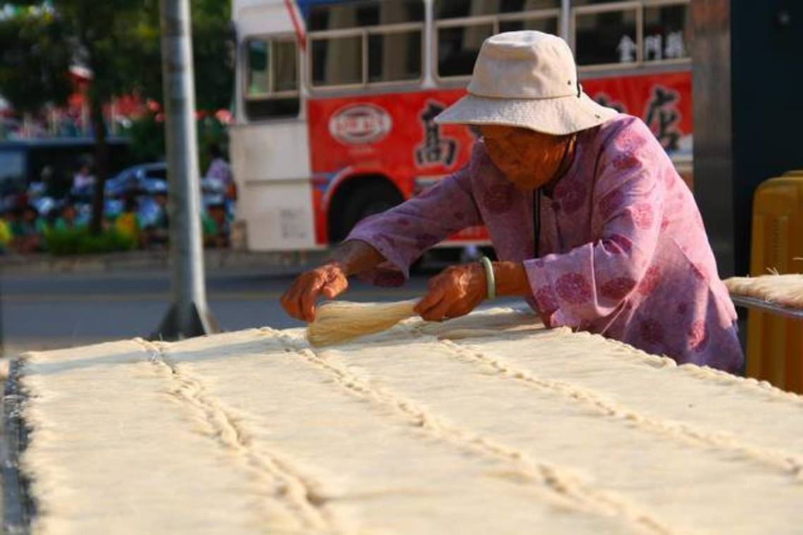 金門路邊翻麵線的阿嬤