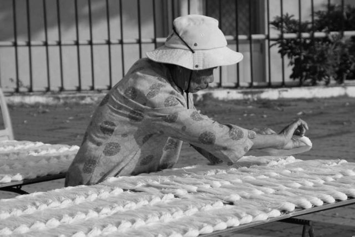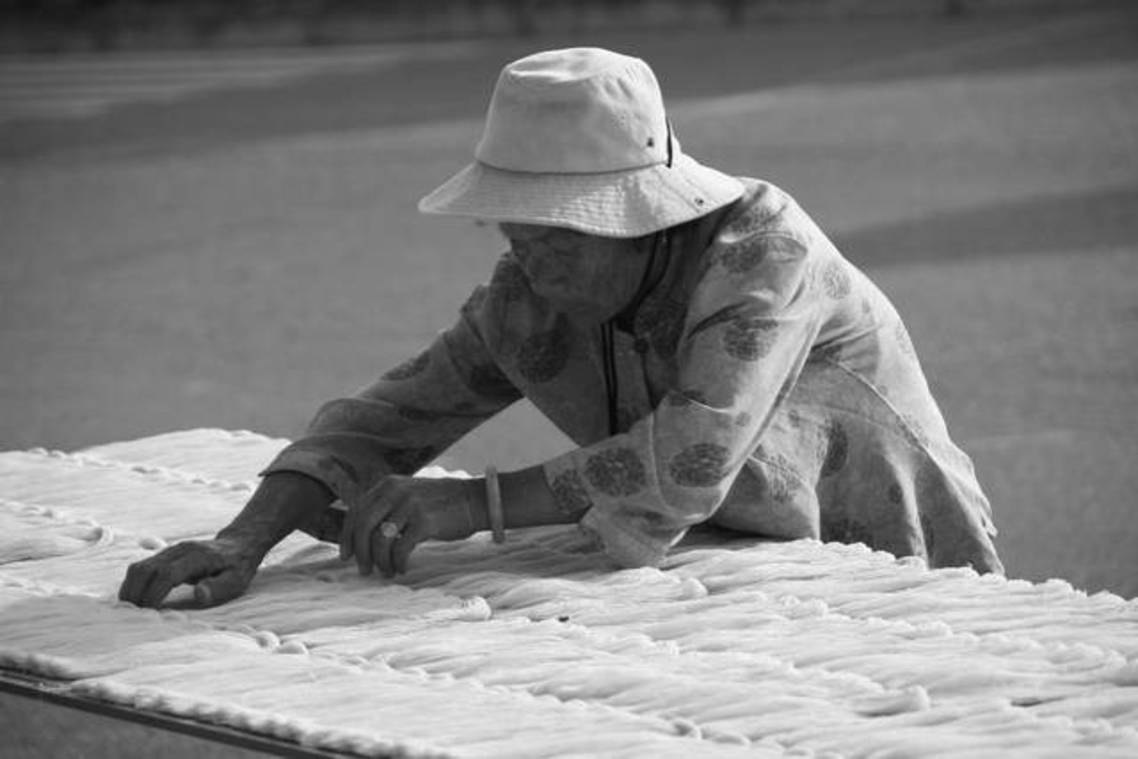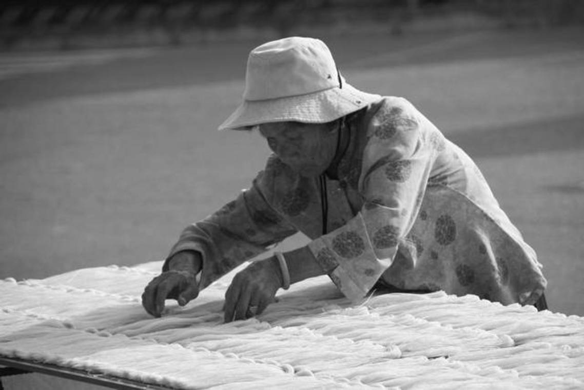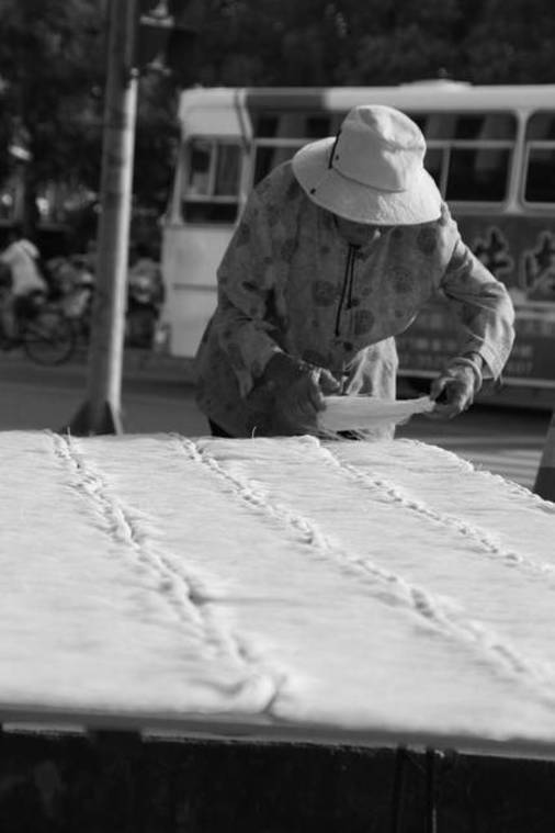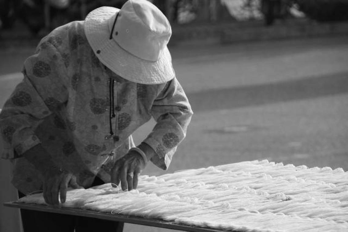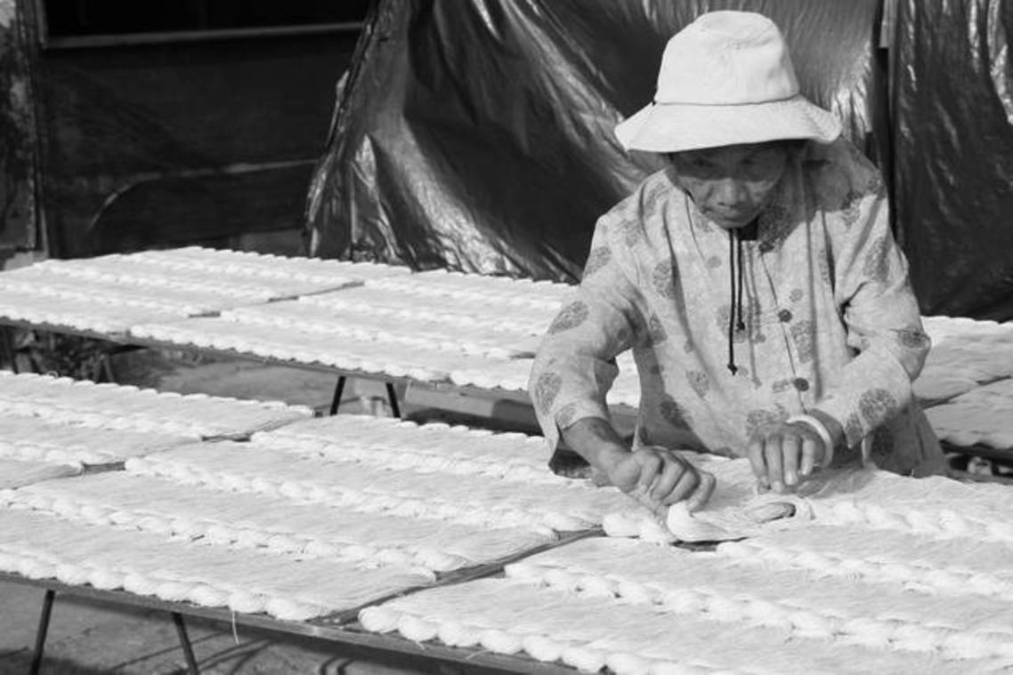 金門路邊翻麵線的阿嬤