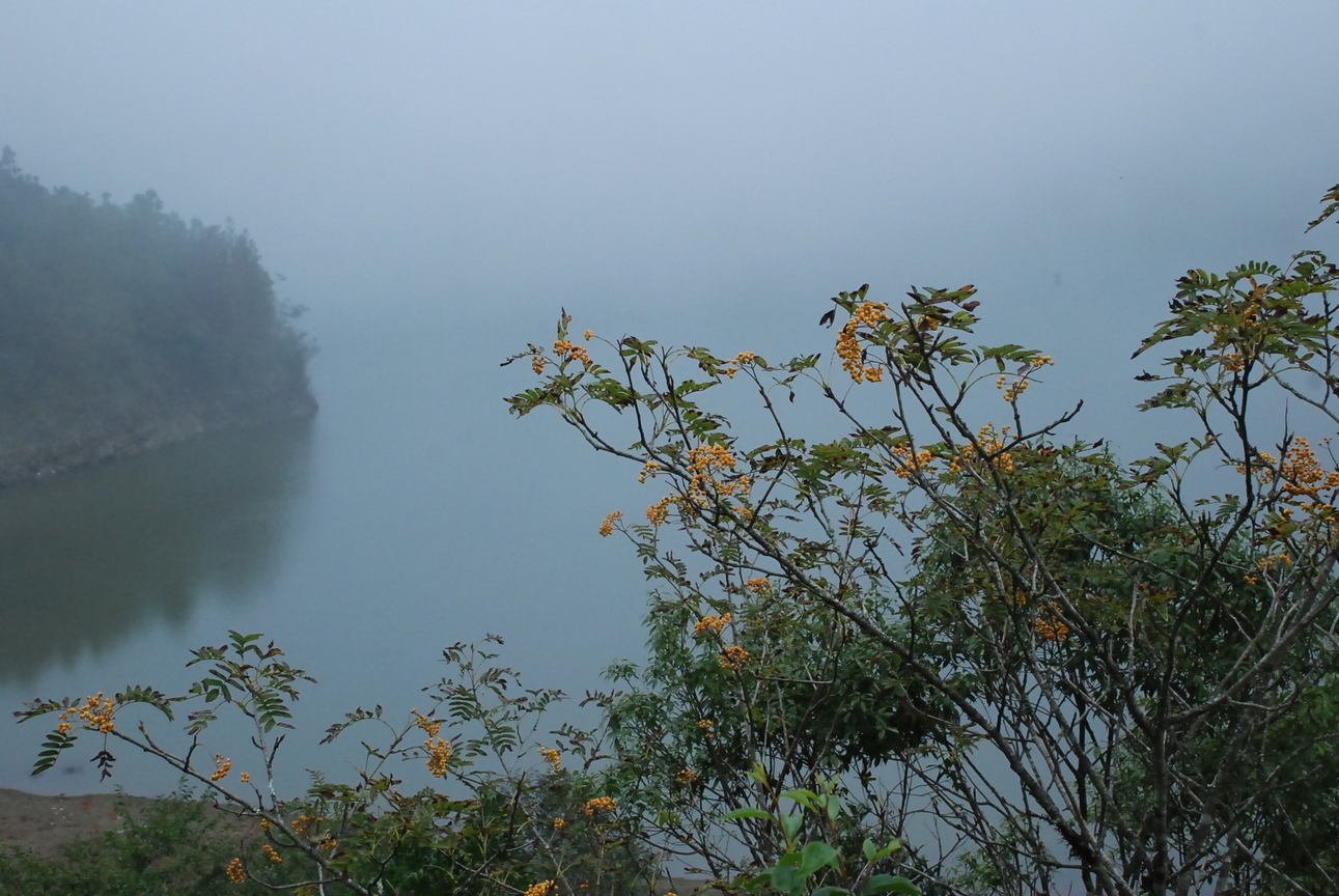 【巒大花楸 】 在台灣的最高湖泊—宜蘭太平山翠峰湖,發現高山植物—巒大花楸,搭配著煙霧瀰漫的湖面,令人有難想像在炎炎夏日的台灣,也 有個如此清 幽的人間仙境。(文 : 琬 攝) |