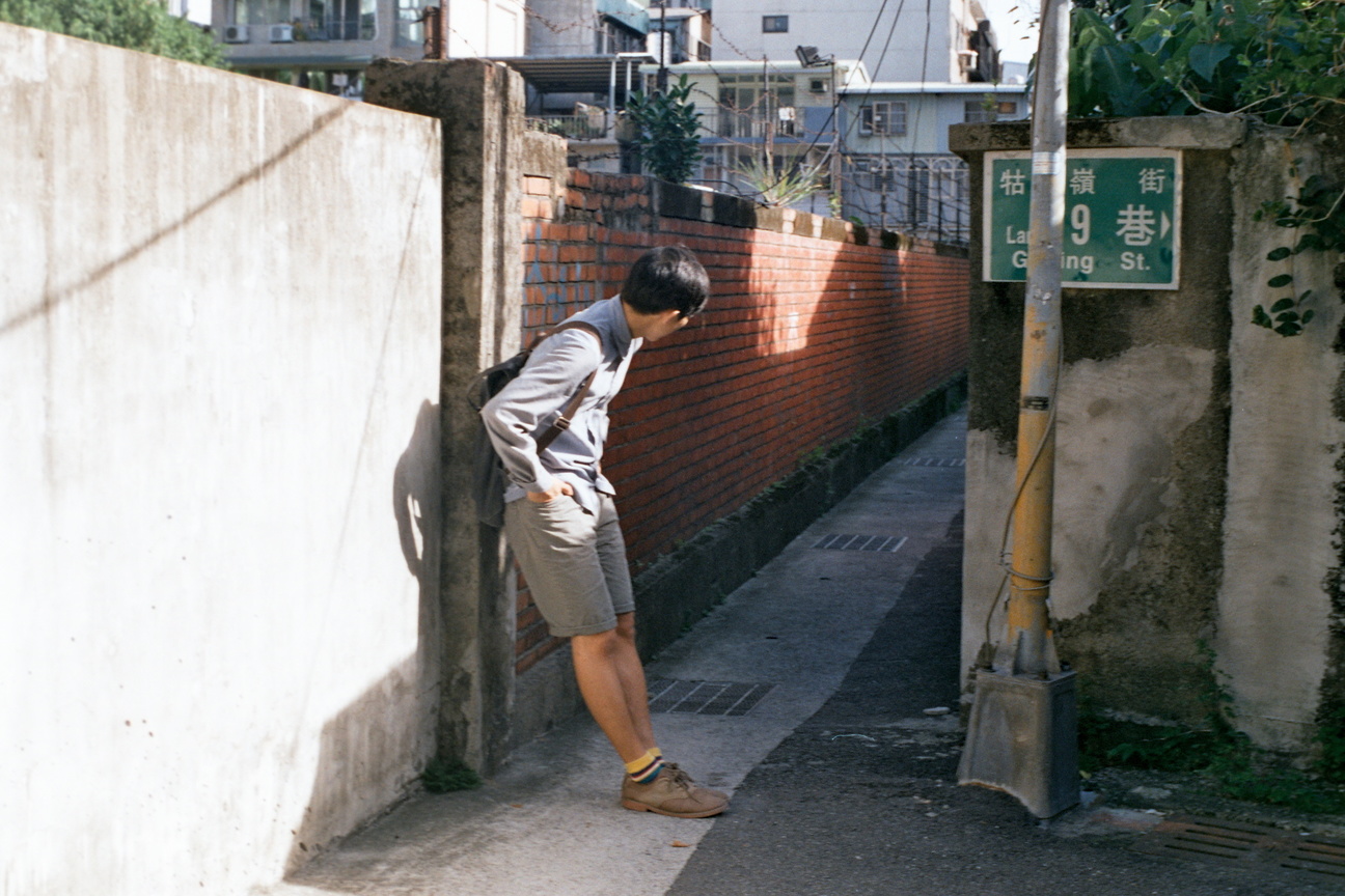 【此作拍攝於中正區牯嶺街的狹窄小巷道中,在間隔只能容納一兩個人通行的巷口,我們駐足觀望對岸,從陽光偏倚的一角走進令人停頓的一條老街道。