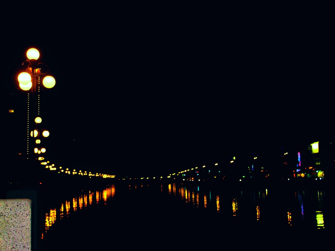 在夜晚,沿途漫步在運河旁, 感受冬天