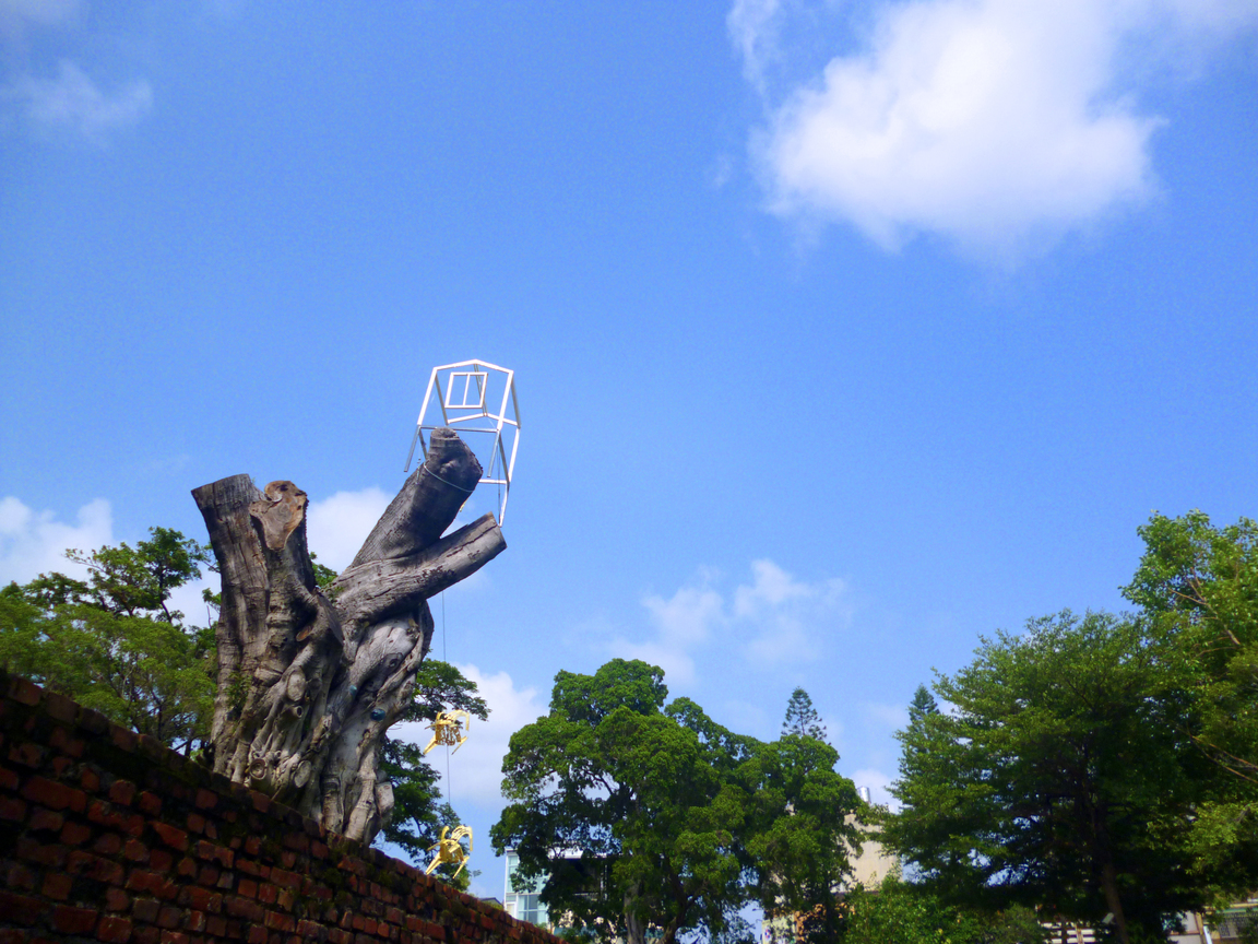 台南孔廟裡的裝置藝術,在教育氣息濃厚的孔廟裡,增添了一筆現代感,似乎給老樹多了一隻小手,延伸到天空。
