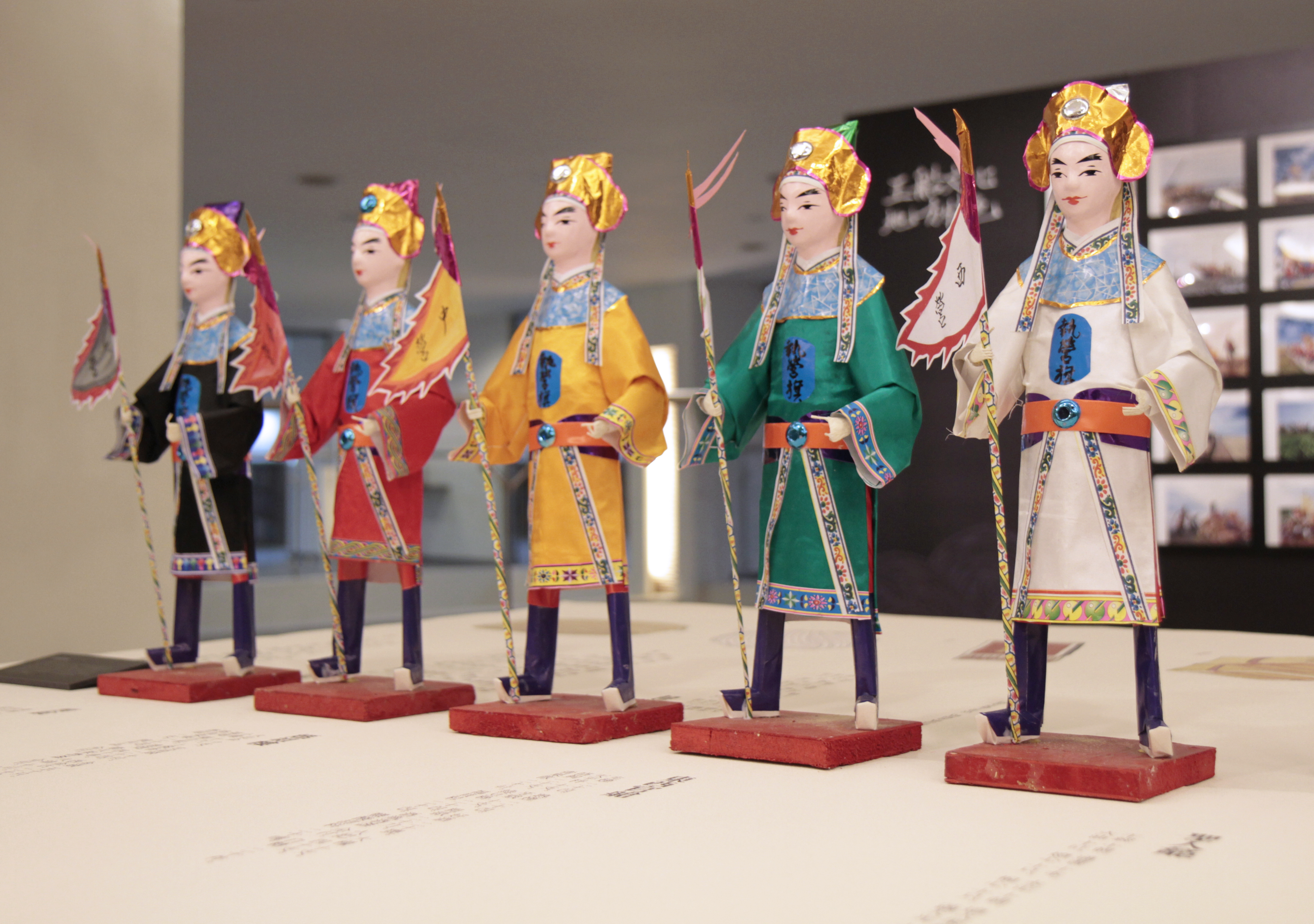 五營兵將是民間信仰的一環,五營是以村莊或廟宇為中心,依五行方位而設的「兵營」,分別為東營、南營、西營、北營、中營,代表五營的旗幟皆為三角形,各為青旗、紅旗、白旗、黑旗、黃旗。民間信仰中,凡正神必有兵將,而這些兵將平時則安放於正神所屬廟宇的五個方位,鎮守庄頭,以防止邪魔入侵。此批兵將由王明賢高工道長製作,除頭部是購買現成零件,其餘均是道長親手完成,做工精細連手指都是一張張紙片捲成,可見其精湛的糊紙技巧。