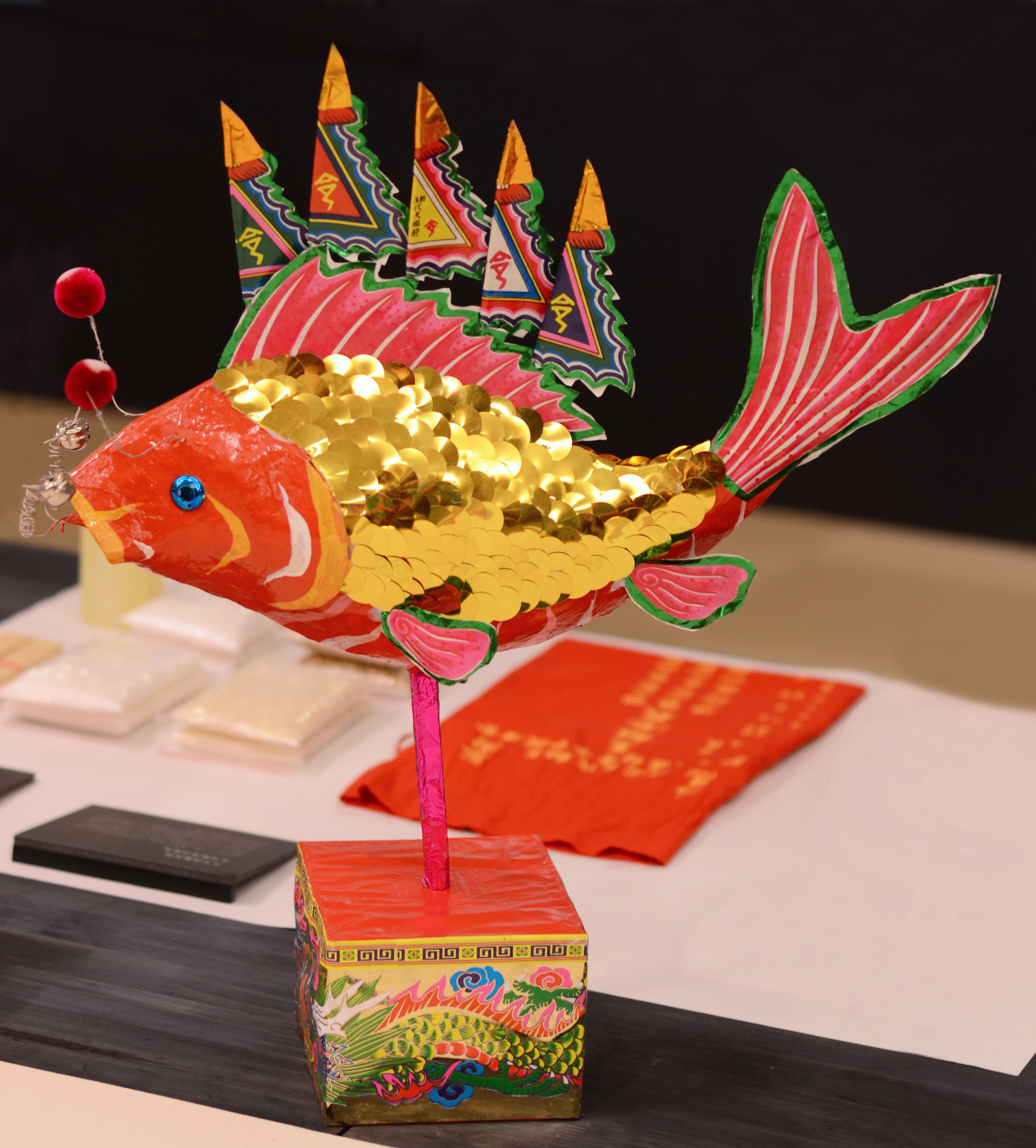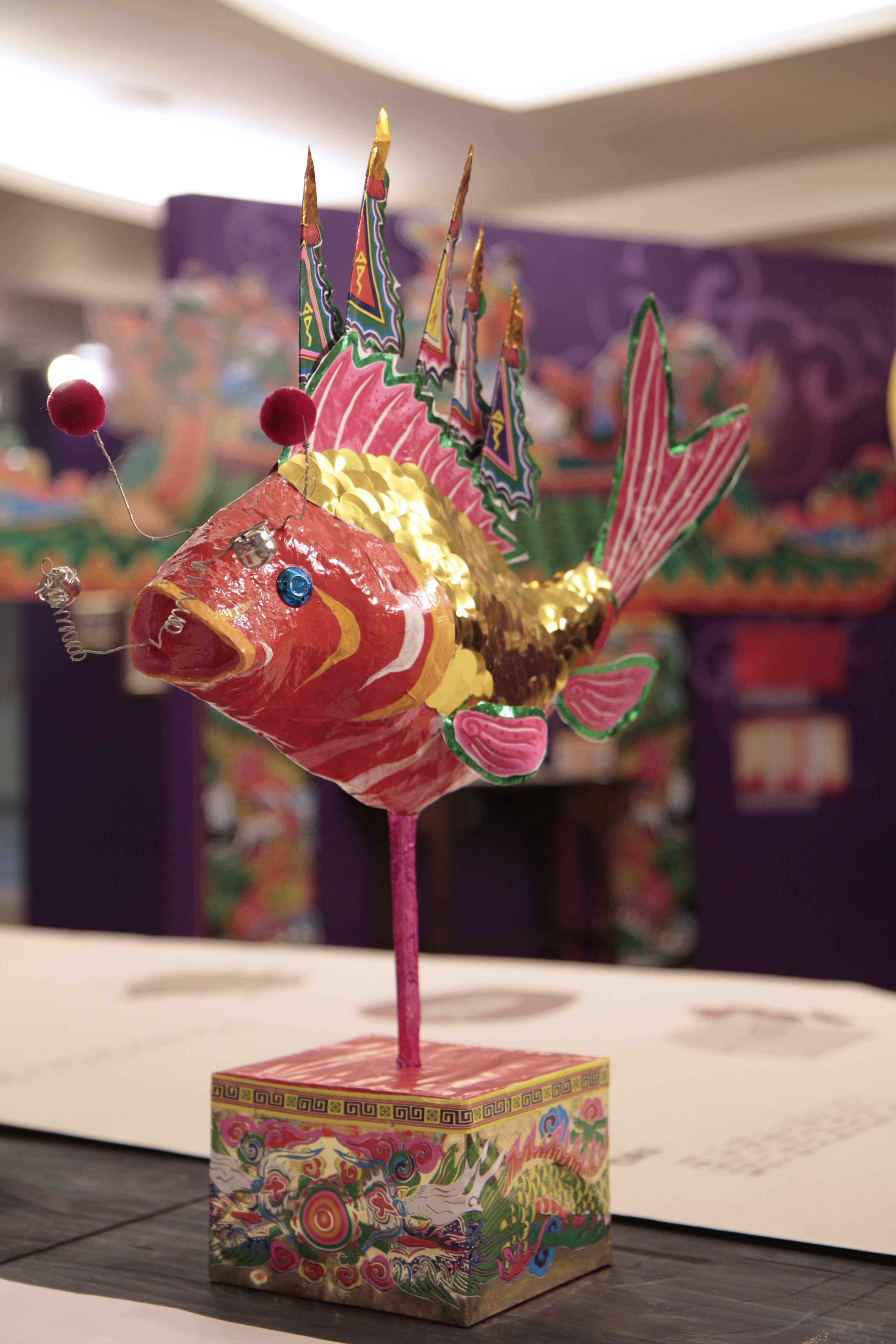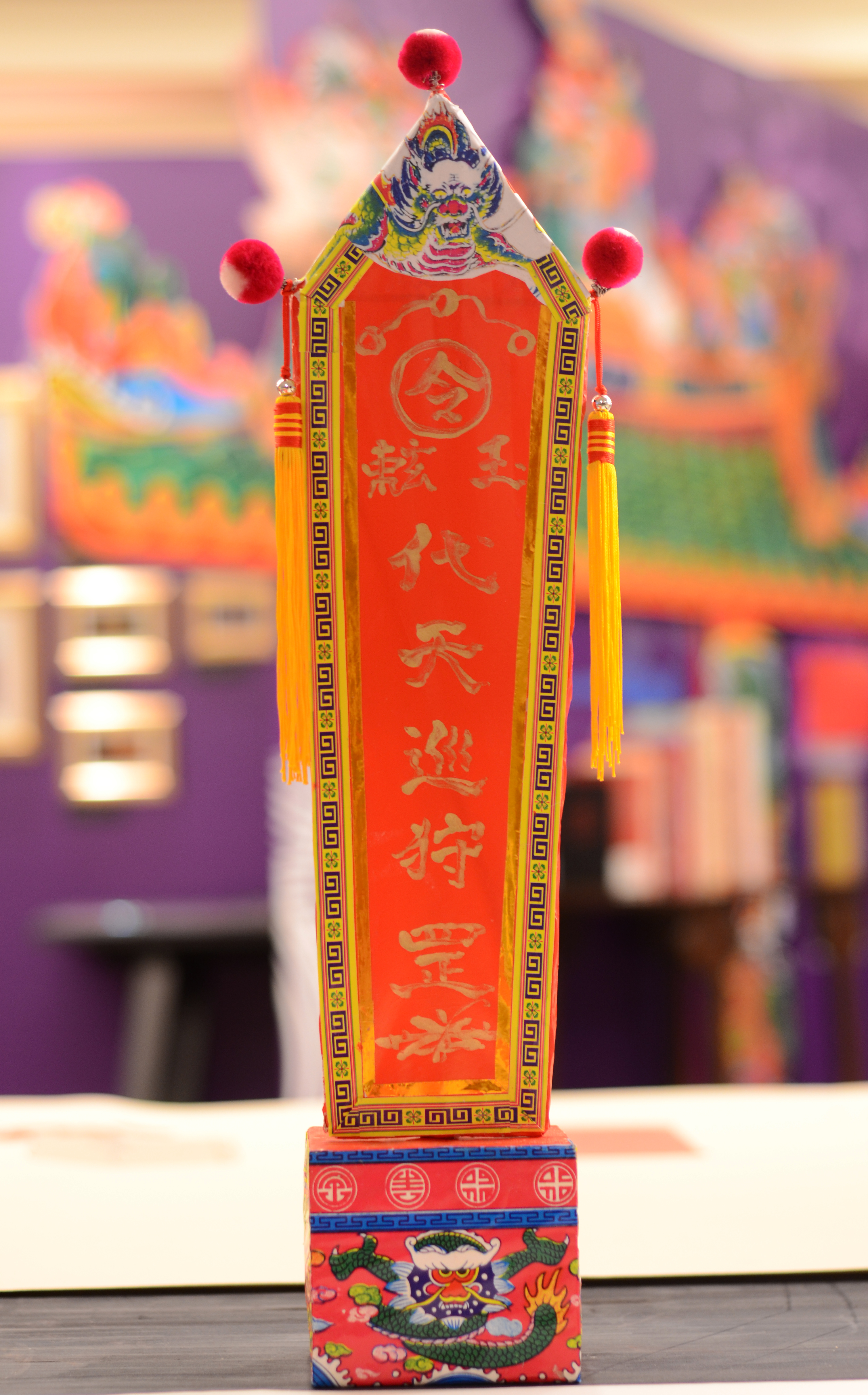 | 為王醮祭儀打造的王船和各式紙紮兵將傳承自上百年的工藝技術,老師傅的手藝更是重要的無形文化資產。本展覽特別邀請臺南市文化資產管理處登錄傳統工藝類無形文化資產藝師─王明賢高功道長製作王船、王令、鯉魚與兵匠,並主持開光儀式;向國家民俗藝術薪傳獎得主─國寶級藝師吳敦厚於鹿港主持的燈舖訂製「代天巡狩」燈籠;另外,今年二月舉辦王醮儀式的佳里金唐殿,也提供廟方製作的添儎包,讓觀者近距離接觸實品,深入探索王船文化。 |