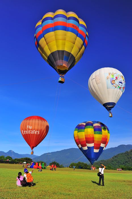 一大早05:30到達鹿野高台時,已非常多人在等待看大氣球,五顏六色的大氣球和台東的青山藍天,搭配出一幅色彩豐富的美圖。 |