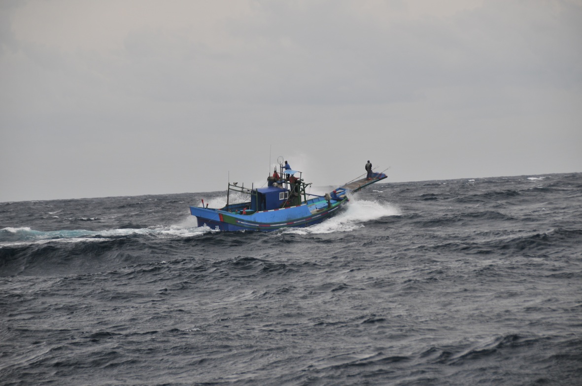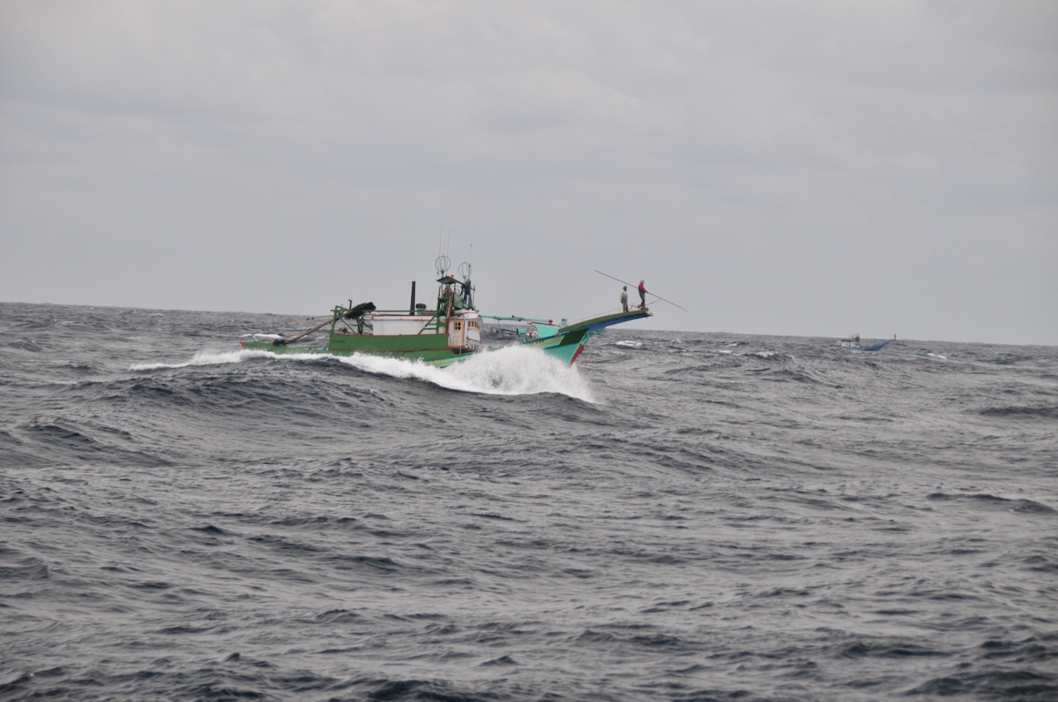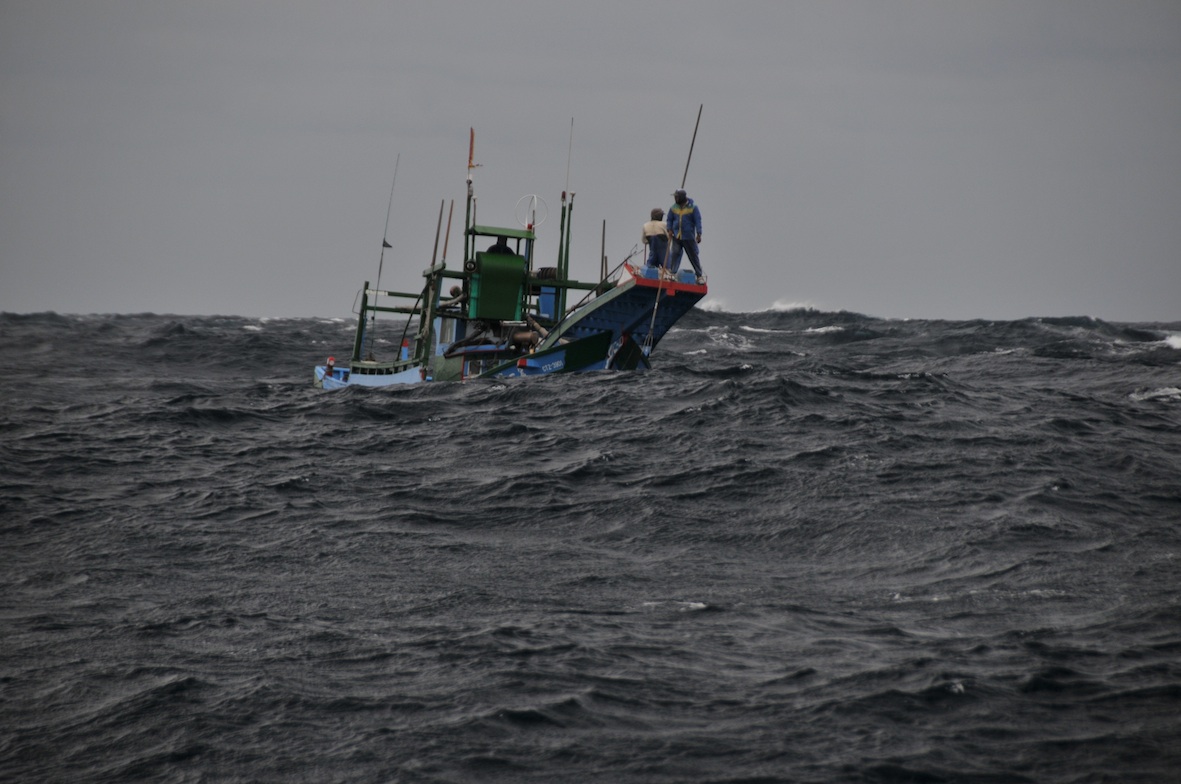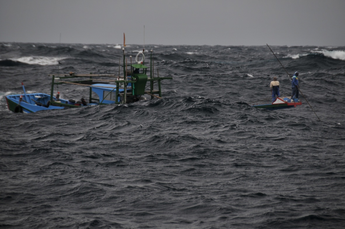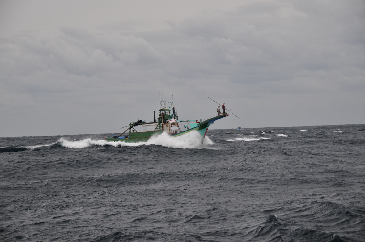 風浪中,又看見立翅旗魚(俗稱白肉旗魚),船員們全神貫注展開第二波追捕。