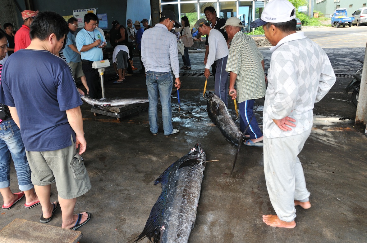 一尾一尾的旗魚被拉上魚市場的磅秤台,這是成就與滿足的一刻。
