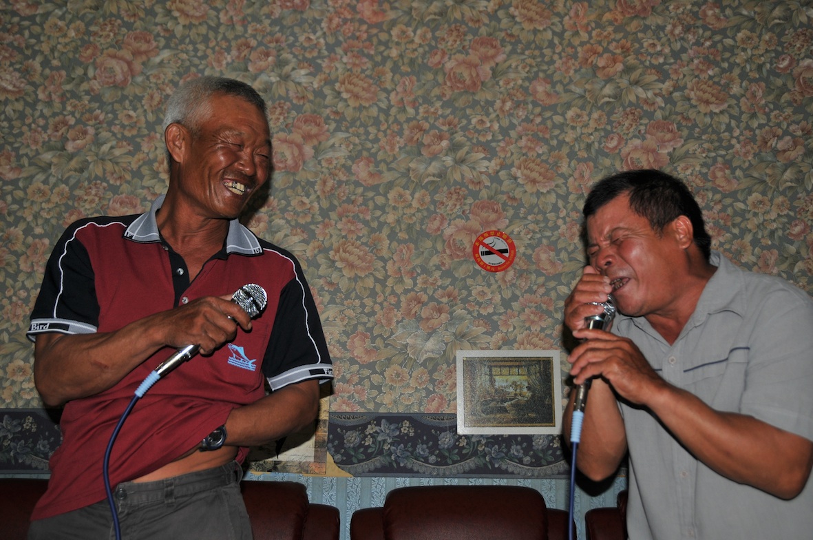 靠岸之後,鏢手們往往會聚在一起喝點小酒,唱歌同樂。這是漁夫們下工後的生活剪影,他們離開飄浪的海域,踏實生活、忘情唱歌。