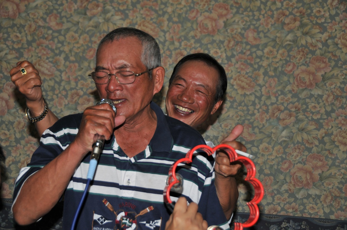 ももさん拿著麥克風投入地唱著歌,後面永福船長則開心地伴舞。忘情的神態來自於豐沛熱血的性格,他們是不折不扣的海上男兒!