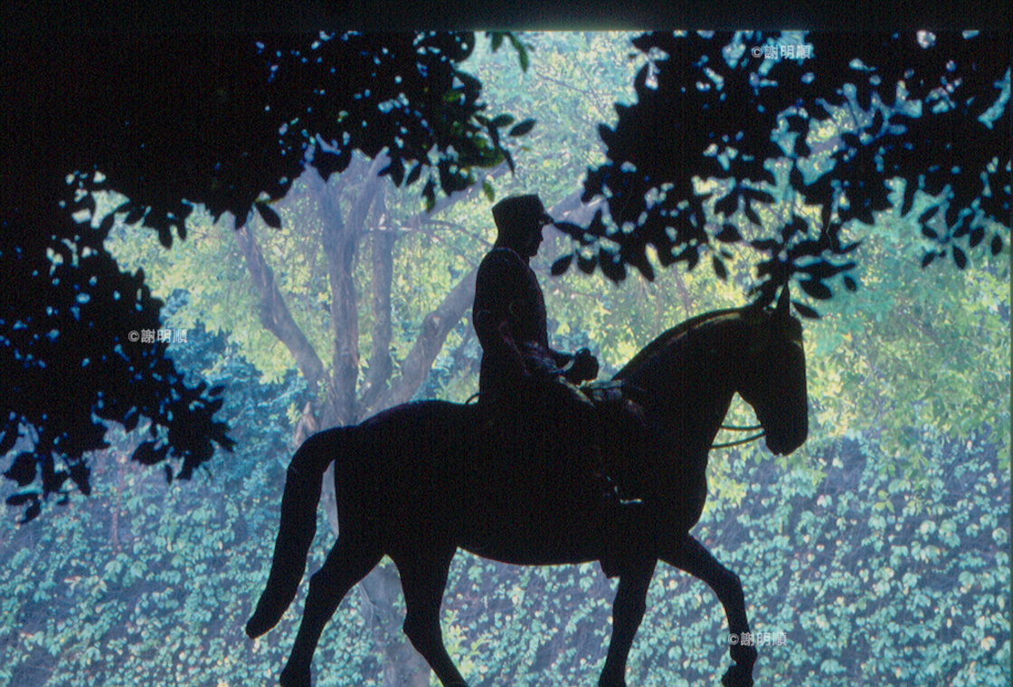 當高高在上的權威統治與造神活動走入歷史之後,我們不妨以「騷人墨客」、「文人雅士」的平和態度來看待仰之彌高的蔣介石騎馬英姿銅像。 拍攝地點:青年公園 拍攝時間:2006年