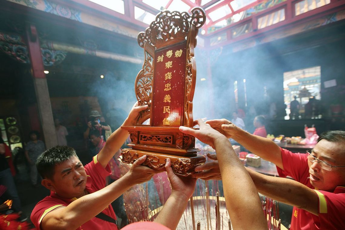 以義民爺為信仰核心,結合奉飯、中元科儀、吃糖粥等儀式習俗,展現北台灣地區的客家藝能特色。