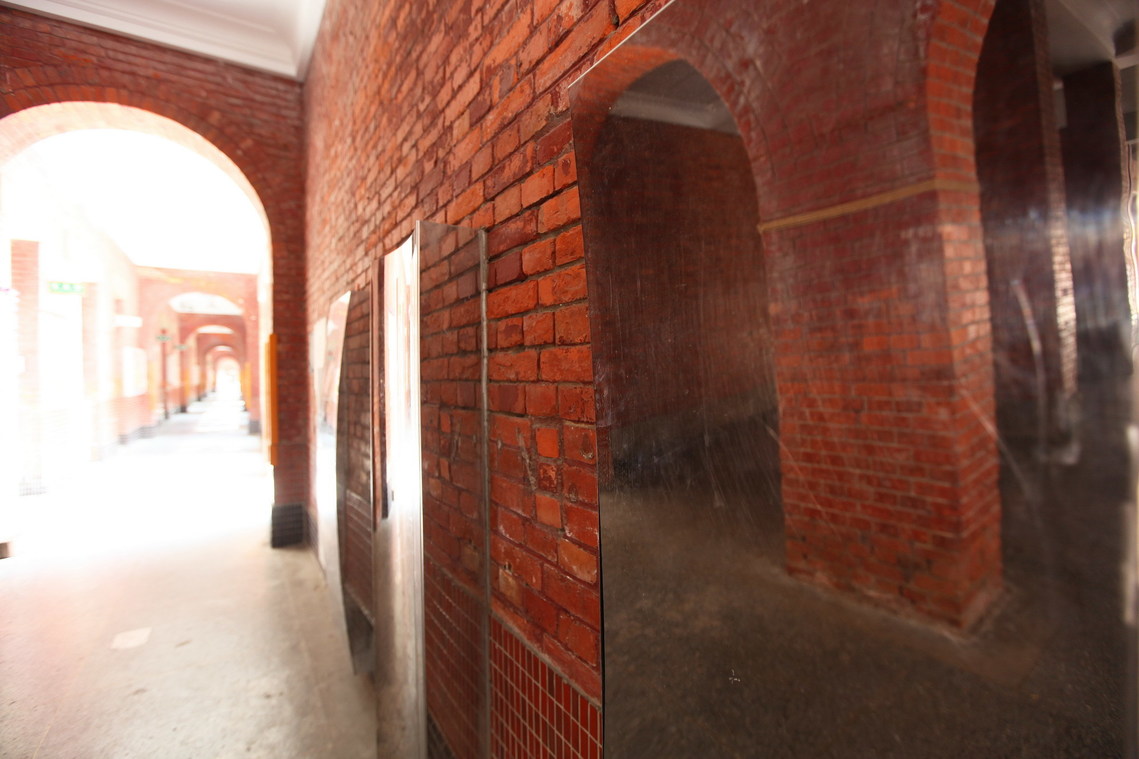 磚構造圓拱雙走廊,整體立面為紅磚形式之校舍建築。