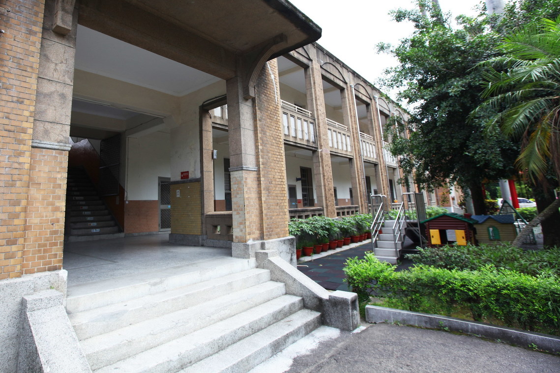 規模為二樓的一字長型建築物,有外玄關。牆身以RC造+洗石面形塑扶手與柱子構成現代風格立面,前有外廊。結構之柱外圍飾有褐色磚,樓梯間柱飾精美罕見。