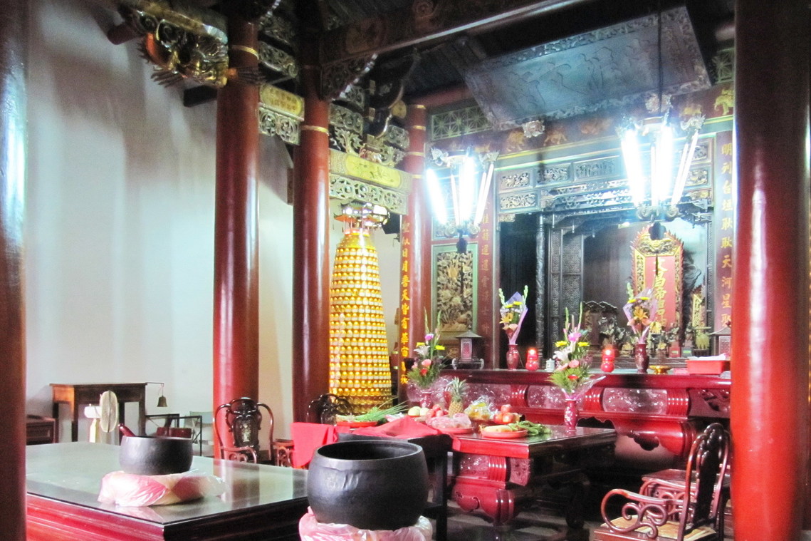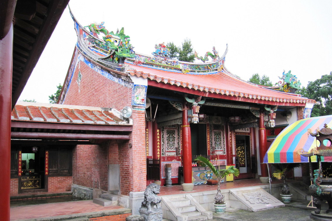 正殿壁體為日治時期紅磚,由十三支楹支承屋頂。