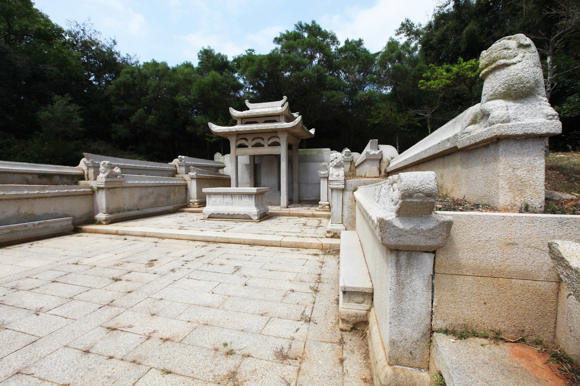 墓亭是整座墓塋的中心,以花崗岩雕刻成仿木作的形式,如斗栱及補間舖作等,並採歇山重檐形式,表達木結構的優雅柔美。