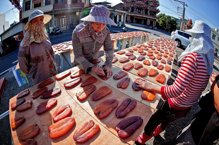 屏東縣林邊鄉乃靠海之處,鄉內養殖業蓬勃發展,不論人工養殖或出海捕獲之烏魚,均在此由工人手工日曬烏魚子。 |