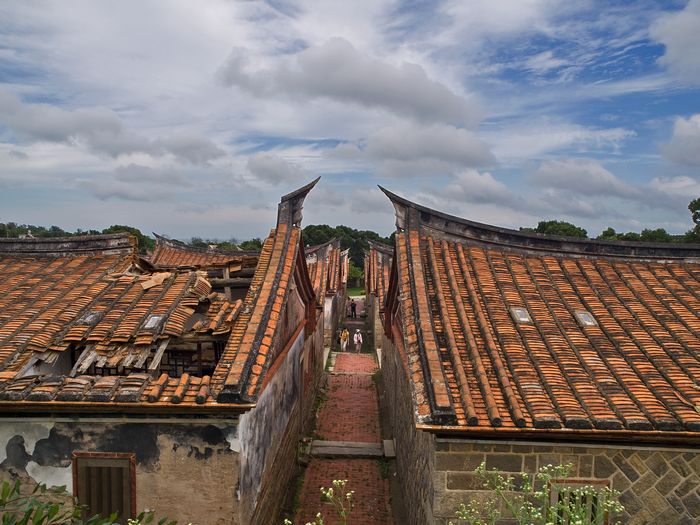 「山后聚落」分為頂堡、中堡及下堡,知名的「金門民俗文化村」指的是中堡,建於清光緒26年(1900年),是金門第一個開放成為觀光景點的聚落。這16棟對稱工整的二進式雙落古厝加上一座宗祠和一座學堂,被稱為「山后中堡十八間」。 |
