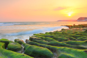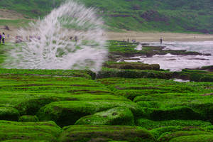 位於北海岸石門區老梅里的綠石槽海岸,每年的三至五月間,在冬季東北季風盛行時,浪花滋潤了石槽的岩面,開始滋生一大片綠色的海藻,把整個海岸染成鮮綠的春天。2018年1月交通部觀光局北觀處表示為維護自然環境生態的永續,將依據潮汐及遊客狀況,每日派保護志工及巡守人員至綠石槽現場解說及勸導,希望遊客能配合遵守不踩踏石槽的欣賞公約。