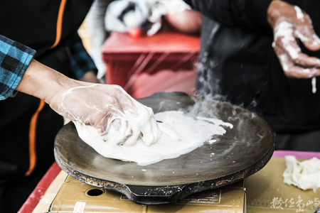 金門路邊翻麵線的阿嬤