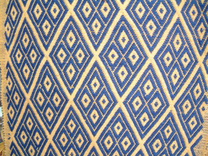 賽德克編織沐浴於春陽-運用傳統編織技法〈浮織/mili〉這是一件非常美麗的編織品,可以當桌巾,其材質為毛織線。