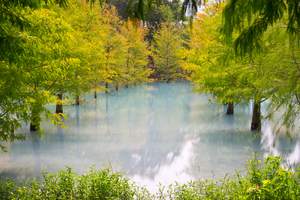 湖面鏡映了漂亮的落羽松